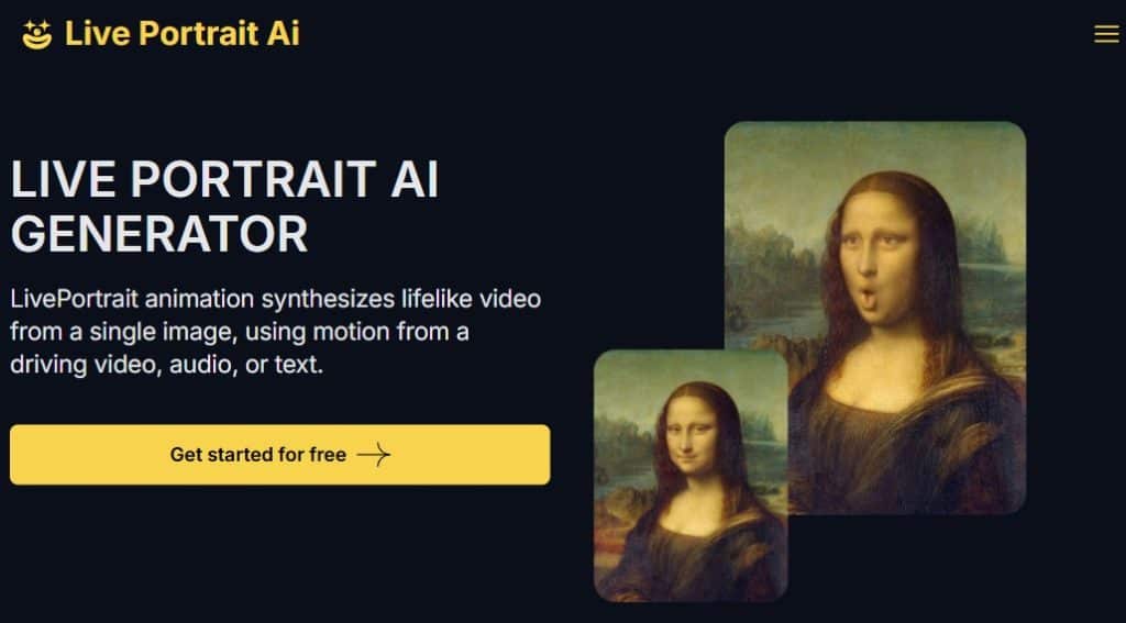 Live Portrait AI, a tool developed to create living portraits, lives up to its name. It transforms portraits of people, animals, and oil paintings into photo animation with its innovative AI technology. The AI portrait app replicates the facial motions and head movements of the source video for your static portrait photos. If you have photos of your pets or favorite animals, Live Portrait AI can convert them into realistic animated videos.