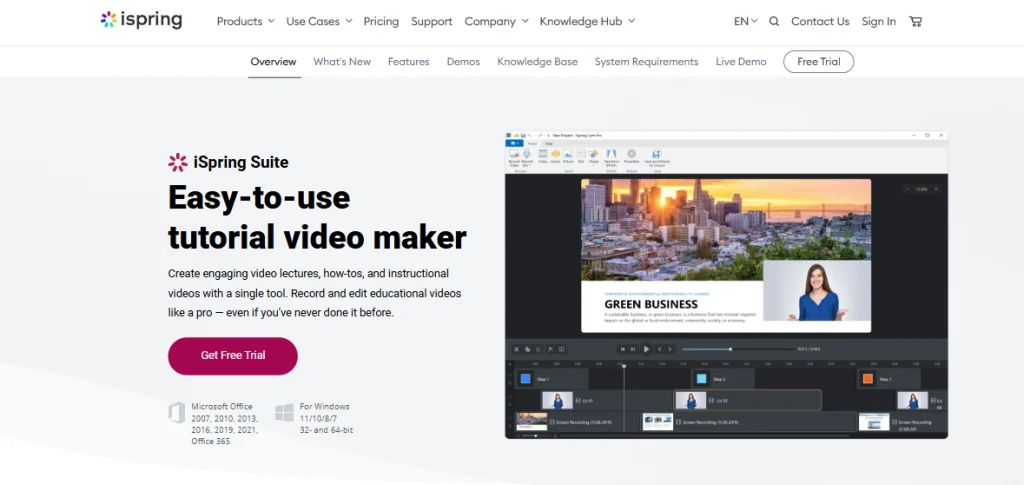 iSpringSuite can create a wide range of instructional videos, including training videos, product demos, video lectures, webinar recordings, educational lessons, explainer videos, how-to videos, and software presentations. The tutorial video maker allows you to record or upload your educational video content directly to the platform. So, if you’d like to provide live tutorial video lessons, you have that option with this free online tool.