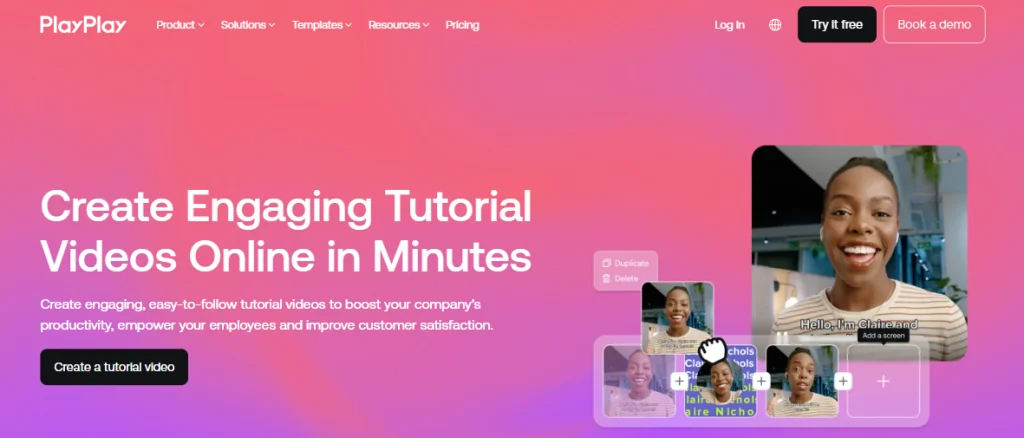 PlayPlay will let you create educational and engaging tutorial videos online for your customers, employers, and other target audiences. Viewers will have an easy time following along with these tutorial videos due to the dynamic visual elements, premium-quality stock media, automatic subtitles, voiceovers, and added text that can be incorporated into them.