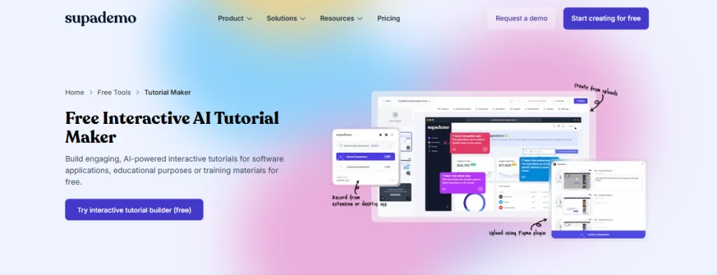 SupaDemo is a free interactive AI tutorial maker that leverages the power of AI technology to create engaging interactive tutorial videos, including educational content, employee training, software applications, and more.