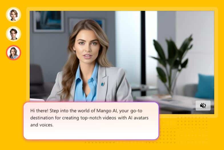 Mango AI je all-in-one AI video generátor která kombinuje realistické hlasové projevy s vizuálními prvky a poskytuje poutavý obsah. Má velkou hlasovou knihovnu s mužskými, ženskými a dětskými hlasy v několika jazycích. Navíc jeho AI voice maker zdarma odvádí skvělou práci při přizpůsobování pohybu rtů avatarů AI mluveným slovům.