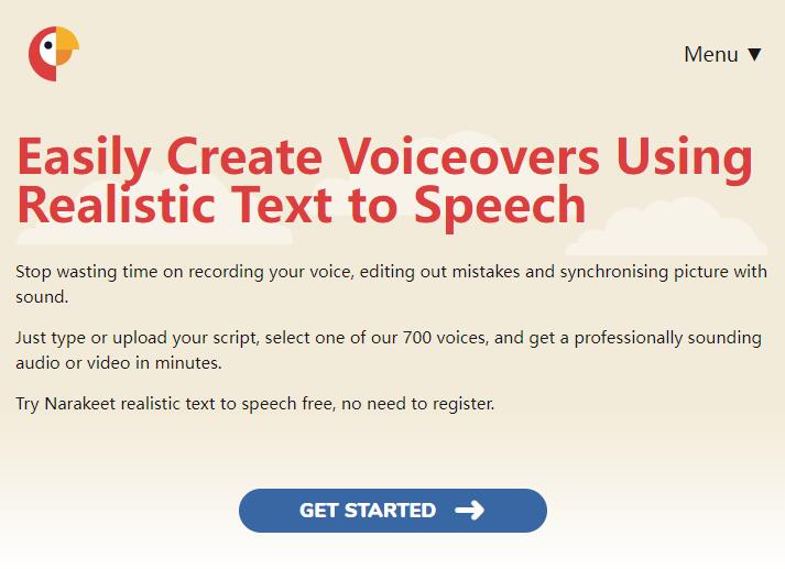 Používání složitějších nástrojů pro úpravy je zbytečné, pokud s převodem textu na řeč teprve začínáte a chcete svému skriptu dát hlas. Narakeet splní vaše požadavky svými snadno použitelnými funkcemi. Díky uživatelsky přívětivému rozhraní je snadné vložit skript pro vyprávění nebo nahrát dokumenty. Poté vyberte hlas a jazyk, upravte zvukový výstup podle svých představ a nakonec si stáhněte zvukový soubor.