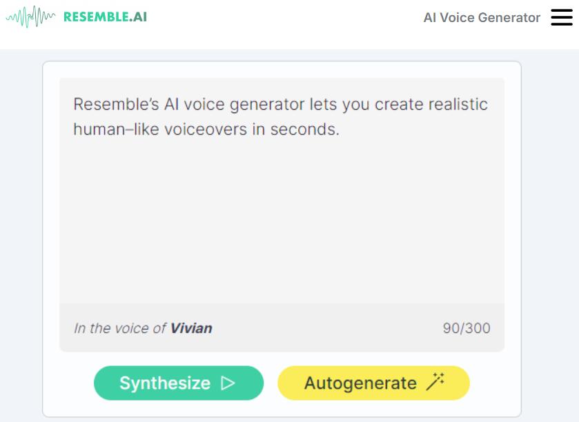 Resemble AI je pokročilý tvůrce hlasu AI, který umožňuje vytvořit realistický a lidsky znějící hlas během několika sekund. Jde nad rámec převodu textu na řeč tím, že poskytuje také funkce převodu řeči na řeč, vícejazyčný dabing a neuronové úpravy zvuku. Resemble AI je webová platforma, která poskytuje řadu přizpůsobitelných nastavení a pomáhá vám přidat personalizovaný dotek generovaných hlasů. Vytváření zvukových klipů, načítání materiálu a generování vysoce kvalitních hlasů umělé inteligence – to vše je pomocí nástroje Voice Maker AI snadné. Některé funkce, které stojí za zmínku, jsou: