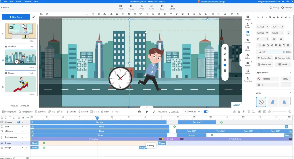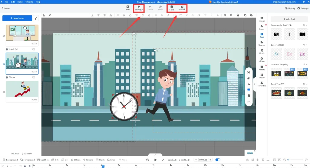 Po přidání efektů animace si zobrazte náhled animace loga, abyste se ujistili, že vypadá tak, jak chcete. Pokud jste s výsledkem spokojeni, exportujte animaci loga v požadovaném formátu. Mango Animation Maker podporuje širokou škálu video formátů, takže si můžete vybrat ten, který nejlépe vyhovuje vašim potřebám. Animaci svého loga můžete také sdílet přímo z Mango Animation Maker na platformy sociálních médií, jako je Facebook a YouTube.