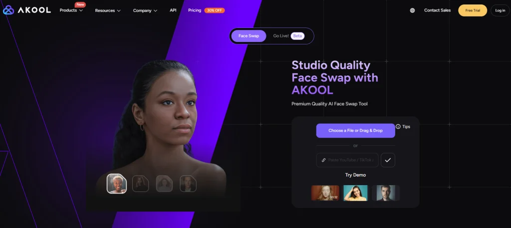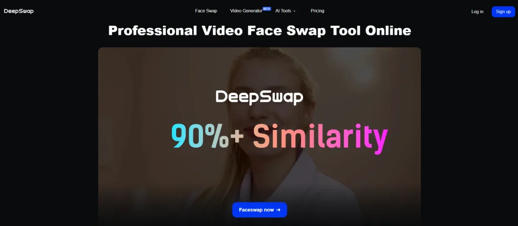 DeepSwap pomáhá s okamžitou výměnou obličejů a nabízí až 90% podobnosti při výměně obličejů. Je to výkonný nástroj pro výměnu obličejů ve video aplikaci, který vám umožňuje provádět více výměn obličejů s ultrarychlým zpracováním a zabezpečeným soukromím dat. Buďte vtipní a kreativní s rychlými výměnami obličejů v rozlišení 4K. Navíc můžete provádět skvělé úpravy, které vašim snímkům dodají studiový vzhled.