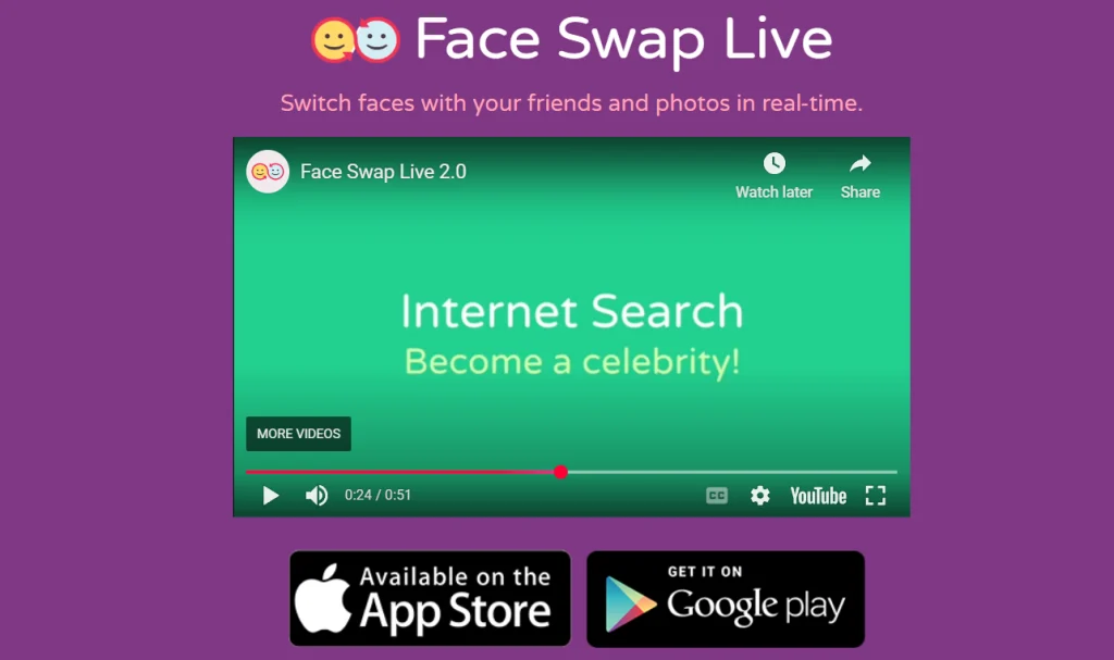 Toto je další aplikace, která vám umožňuje vyměňovat si obličeje ve vašich videích s obličeji vašich přátel, rodinných příslušníků nebo spolužáků. Jednoduše si vyberte libovolnou fotografii a vyměňte ji v nahraném videu. Obličeje můžete také přepínat živě prostřednictvím video kanálu kamery. Stačí namířit kameru na svého přítele a aplikace vám v reálném čase automaticky vymění obličej. Navíc si můžete vylepšit zážitek z používání 3D filtrů, fotografických funkcí a dokonce i funkce kostýmního režimu.