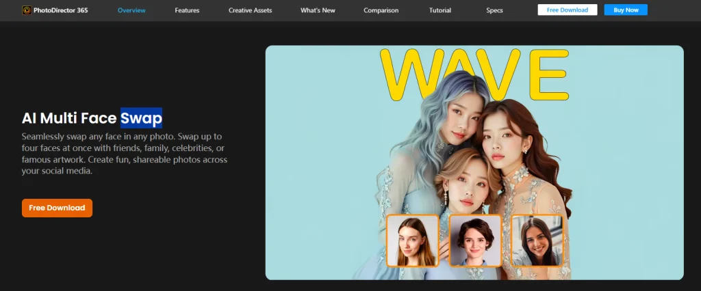 Tato aplikace pro výměnu obličejů s umělou inteligencí je kompatibilní se zařízeními iOS, Android, Windows a macOS. Nabízí funkce, jako je výměna obličejů s umělou inteligencí, ruční úpravy a nástroje pro vystřihování s umělou inteligencí. S PhotoDirectorem můžete vytvářet realistické a plynulé výměny obličejů, na kterých se podílejí vaši rodinní příslušníci, přátelé a další. Aplikace také nabízí funkce pro vylepšení a retušování, které vám umožní zdokonalit úpravy pro dosažení optimálních výsledků.