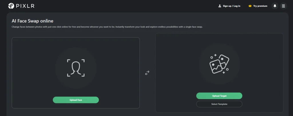 Pokud chcete výkonné a originální výměny obličejů, zvolte PIXLR pro snadnou a rychlou výměnu obličejů ve vašich videích. Stačí nahrát video a cílovou fotografii, kterou chcete vyměnit. Tento nástroj s umělou inteligencí provede výměnu během několika sekund a poskytne autentické a přesné výsledky. Vaše data navíc zůstanou soukromá a v bezpečí.