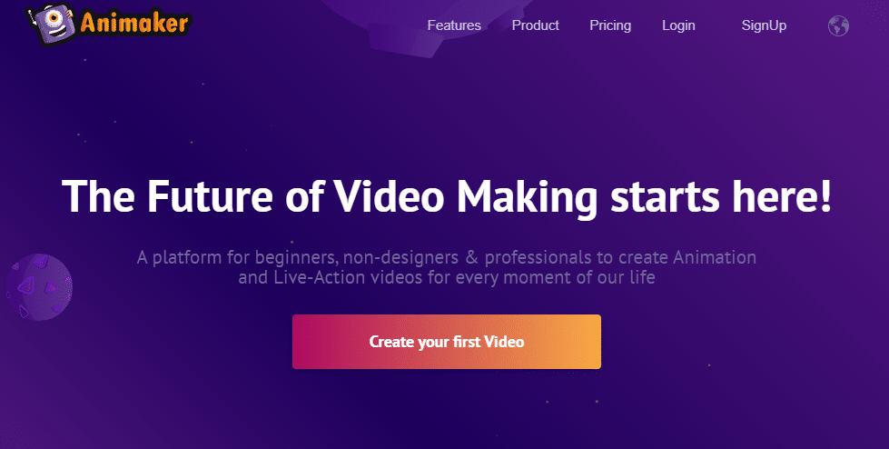 Budoucnost animace na tabuli začíná ve společnosti Animaker. Platforma je vhodná pro nováčky, profesionály i nedesignéry. Poskytuje vám širokou škálu možností, jak prozkoumat svou kreativitu. Vytvářejte poutavá videa pomocí několika kliknutí. Je navržen tak, aby přijal tvůrce videa a spotřebitele po celém světě. Animaker je zařízen tak, aby vytvářel všechny druhy zvuku, které kdy budete pro svá videa potřebovat, od lidských hlasových projevů až po uklidňující pozadí. Použití je snadné a levné.
