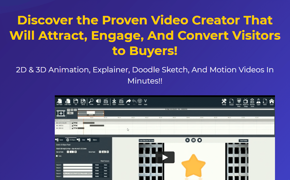 Vytvářejte profesionální animovaná videa během několika minut pomocí softwaru pro video na tabuli Wideo. Najmout si agenturu s tisíci dolarů nebo si zlomit záda při tvorbě videa je minulostí. Video přichází s několika šablonami, ze kterých si můžete vybrat, a dokončit své animované video během několika minut.