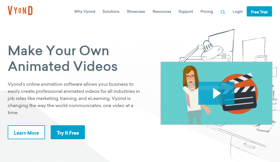 Video software Vyond whiteboard je navržen pro vytváření poutavých videí pro všechna průmyslová odvětví, od školení po marketing a eLearning. Tvůrce videí Vyond doodle je pro podnikatele flexibilní při začleňování videí do marketingových kampaní. Od konzultantů přes vlastníky malých podniků až po pedagogy, platforma vede k lepšímu zapojení publika. Zvyšte svou komunikaci snadným, dostupným a dostupným způsobem.