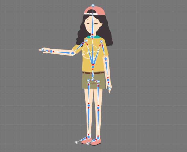 Importujte obrázek postavy do softwaru Mango Animate 2D Bone Animation Software. Poté použijte funkci přidávání kostí a přidejte kosti, díky kterým se postava pohybuje. Tento software poskytuje obrovské množství přednastavených šablon pro uživatele, kteří nemají čas a energii na přidávání kostí sami. Poté si mohou vybrat správnou kostní šablonu a aplikovat ji na obrázek postavy. Až budete s kostí hotovi, můžete zapnout režim náhledu, který vám umožní hýbat s kostmi a když najdete něco špatně, můžete kosti upravit podle svých potřeb.