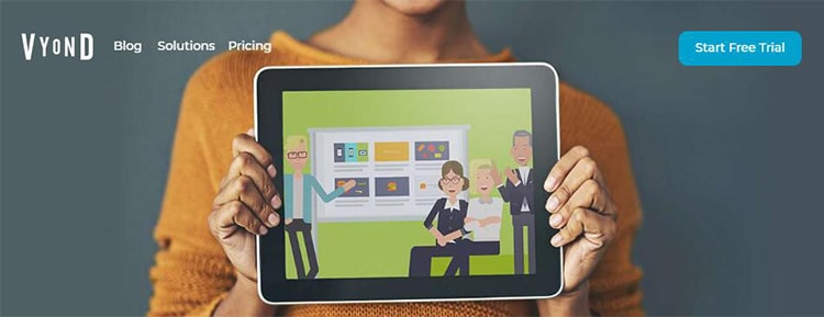 GoAnimate, kendt som "Vyond" nu, er en førsteklasses whiteboard-doodle-videosoftware til at skabe forklarende videoer. Det er et onlineværktøj og kan prale af et enormt bibliotek af skabeloner, karakterer og valgfri voice over til dine valg for at lave fantastiske whiteboard-doodle-videoer.