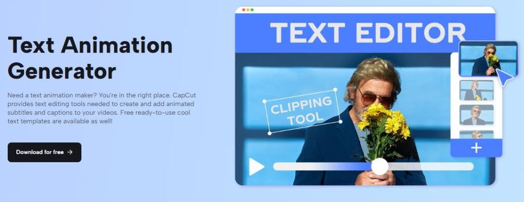CapCut ist ein kostenloses und benutzerfreundliches Videobearbeitungstool. Es bietet Textbearbeitungswerkzeuge zum Erstellen origineller Untertitel, die Sie Ihren bestehenden Videos hinzufügen können. Das Tool enthält eine Bibliothek mit Rich-Media-Elementen, die Sie für Ihre Videoprojekte anpassen können, darunter Intros, GIFs sowie verschiedene Textstile und Designs. Anschließend können Sie Ihre fertigen Animationsvideos mit CapCut kostenlos in 4K-Auflösung und ohne Wasserzeichen exportieren.