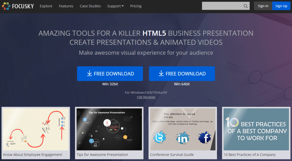 Vyond, el nuevo nombre de GoAnimate, es un creador de presentaciones de vídeo gratuito basado en la nube. Todas las plantillas de este software de creación de presentaciones de vídeo se dividen en tres partes: animación contemporánea, adaptada a los negocios y animación de pizarra. Las presentaciones en video tratan sobre los personajes y las formas de personalizarlos son amplias, y todas las demás características son bastante estándar. Vyond es bueno para presentaciones de negocios porque hay algunos cuadros y gráficos personalizables que se pueden agregar. Los gráficos disponibles son gráficos circulares, gráficos de líneas y porcentajes. Puede usarlo para hacer que sus datos sean más visuales. Crea presentaciones en vídeo y cautiva a tu audiencia.