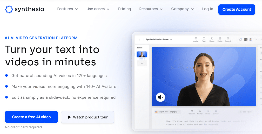 A diferencia de otros programas, Synthesia es principalmente un software de presentación animada impulsado por IA. Es amigable para los verdes, por lo que puedes editar tan fácilmente como una plataforma de diapositivas. Ofrece voces de IA con más de 120 idiomas y más de 140 avatares de IA para ayudar a los usuarios a obtener presentaciones de video animadas más excelentes. Syntheisa ofrece a los usuarios cinco tipos de vídeos, que incluyen aprendizaje y desarrollo, habilitación de ventas, servicio al cliente, seguridad de la información y marketing. Con cuatro sencillos pasos, genere el guión, personalice el video, colabore y comparta, descargue o incruste, puede terminar su obra maestra. No se preocupe por ningún problema de IA durante el proceso de uso. Construida sobre los cimientos de la ética y la seguridad, se promete la seguridad de la IA de Synthesia.
