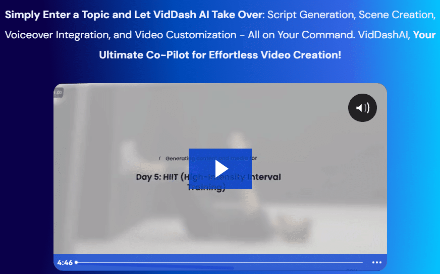 VidDash se esfuerza por convertirse en su asistente de chatbot de IA para la creación de videos. Al aprovechar los algoritmos de IA, simplifica el proceso de creación de videos. Produce videos generados por IA a partir de texto en minutos en lugar de horas, lo que aumenta su productividad. Su editor de arrastrar y soltar le permite generar videos visualmente agradables. Una gran cantidad de vídeos e imágenes de archivo están a su disposición. Aplicar animaciones y transiciones para hacer tus vídeos más dinámicos y mantener a la audiencia enganchada. Agregue voces en off con sonido humano para mejorar el atractivo de su contenido. Este generador de IA de texto a video lo ayuda a crear videos en varios idiomas, romper las barreras del idioma y aumentar el alcance de sus videos.