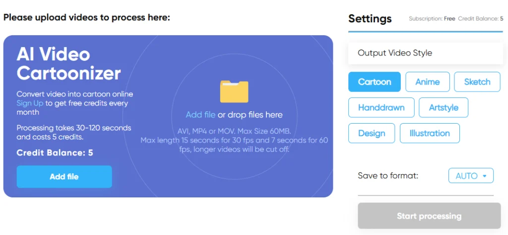 UpScaler is a web-based video to cartoon converter that lets you add cartoon effects to video directly from your browser. Its smart algorithm processes the face and background separately, making the cartoon effects look natural. The tool supports styles like Anime, Illustration, and Sketch. Free users get credits to cartoonize video clips up to two minutes long, while premium plans allow batch processing and longer exports. UpScaler is a great option if you want an online tool to make cartoon video animations without downloading software.