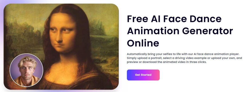Mango AI je poznati AI ples lica generator koji može animirati portrete lica na smiješne i zanimljive načine. Bilo da imate selfie ili sliku lica životinje, Mango AI može oživjeti fotografiju s realističnim izrazima lica. Raznovrsni raspon primjera videoanimacije olakšava animiranje slika vašeg lica. Alat će uključiti odabrani stil animacije u vašu fotografiju lica, čineći je pokretnom i realističnom. Cijeli proces animacije traje manje od 60 sekundi.
