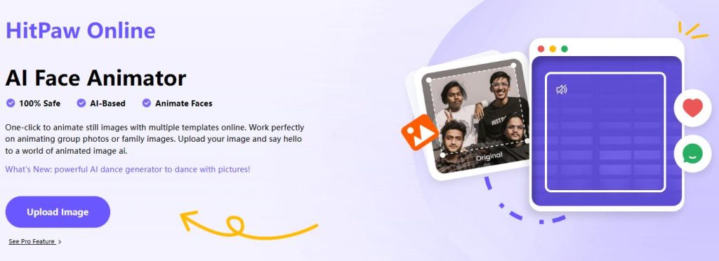 HitPaw je 100% siguran animator lica temeljen na AI koji vam omogućuje da animirati nepokretne slike jednim klikom. Možete koristiti više modernih predložaka kako biste oživjeli svoje fotografije. Alat nije ograničen na animiranje lica jedne osobe; može animirati lica više ljudi na jednoj fotografiji, što ga čini savršenim za oživljavanje obiteljskih ili grupnih slika.