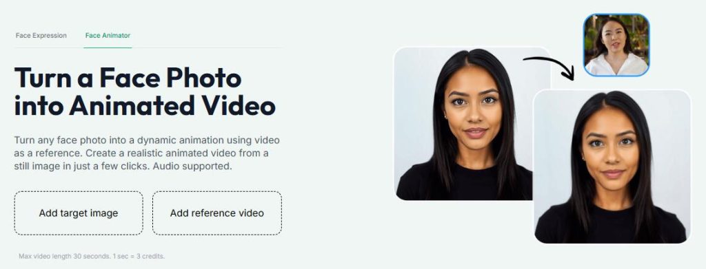 Pincel može pretvoriti bilo koju fotografiju lica u zadivljujući i realističan animirani video sa samo nekoliko klikova. Animacija će uhvatiti iste izraze lica i pokrete iz vašeg referentnog videozapisa. Podržana je sinkronizacija audio sadržaja, što je savršeno za stvaranje ljudskih avatara koji govore za komercijalne prezentacije, objave na društvenim mrežama, marketing web stranica i druge kreativne projekte. Animacija će izgledati prirodno poput stvarnog života.