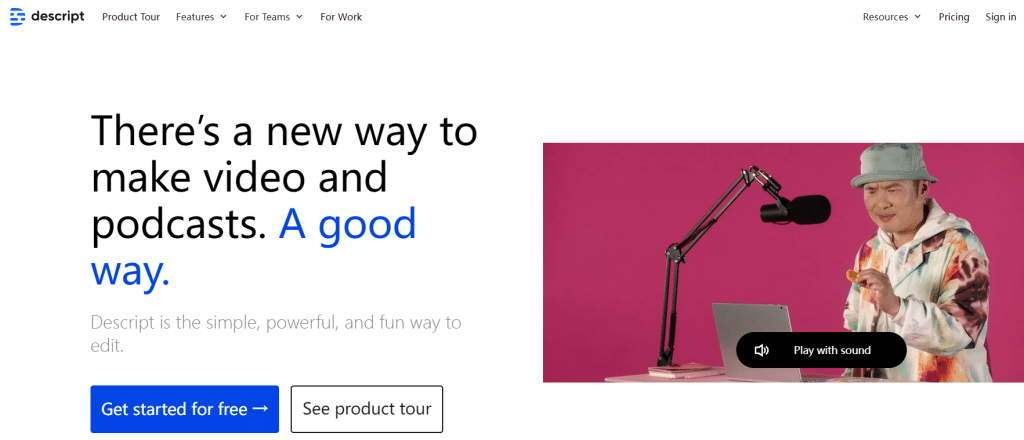 Descript je AI generator animacije koji nudi širok raspon alata za pisanje, snimanje, prepisivanje, uređivanje i dijeljenje sadržaja bez napora. Dizajnirana za različite ljude, uključujući marketinške stručnjake, podcastere, kreatore sadržaja, oglašivače i druge, platforma pokretana umjetnom inteligencijom omogućuje im generiranje sadržaja sa svojim značajkama i značajkama koje su prilagođene korisniku. Učinkovitost Descripta očituje se u visokoj stopi zadovoljstva korisnika i priznanju kao lidera u prostoru za uređivanje videa i podcasting. Uklonite svoju video pozadinu bez zelenog ekrana i šuma.