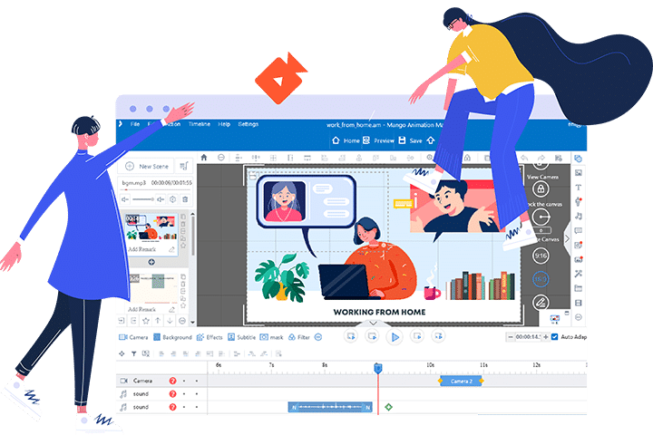 Mango Animation Maker Video olakšava stvaranje animiranih videozapisa s objašnjenjima. Osim biblioteke profesionalnih video predložaka s objašnjenjem i visokokvalitetnih animiranih scena, uređivanje povuci i ispusti pomaže ti da s lakoćom urediš i dizajniraš videosadržaj, omogućujući ti da prilagodiš svoj video s objašnjenjem animacije u nekoliko minuta. Stvaranje profesionalnog videa s objašnjenjem animacije je povjetarac.