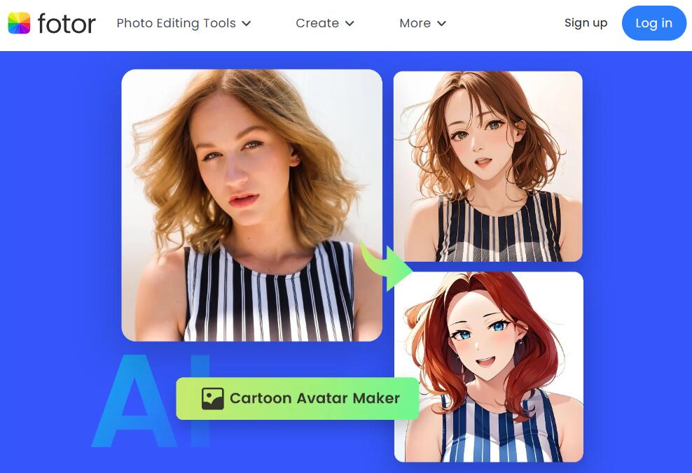 Bagaimana jika Anda ingin membuat gambar profil kartun yang unik dari gambar potret Anda? Fotor telah menarik banyak perhatian dalam beberapa tahun terakhir karena menyediakan rangkaian alat penyuntingan foto AI yang lengkap bagi pengguna. Pembuat avatar kartun AI-nya bekerja dengan baik dalam membuat potret kepala kartun yang menarik yang langsung menarik perhatian orang. Mulailah proyek Anda dengan memilih gaya yang disukai, seperti cyberpunk, cat air, karakter game, komik, dll. Didukung oleh teknologi AI yang canggih, Fotor menghasilkan avatar kartun berdasarkan potret atau swafoto Anda, memastikan potret kepala dan gambar profil Anda kreatif dan menarik. Anda juga dapat membuat avatar kartun hewan dengan mudah.