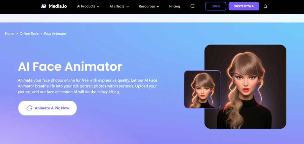 Media.ioは、表情、音声同期、ダイナミックなモーションエフェクトなどを用いて顔にアニメーションを付け、静止画に命を吹き込む多機能AIフェイスアニメーターです。ポートレートに個性を加えたいコンテンツクリエイター、マーケター、ソーシャルメディア愛好家に最適です。