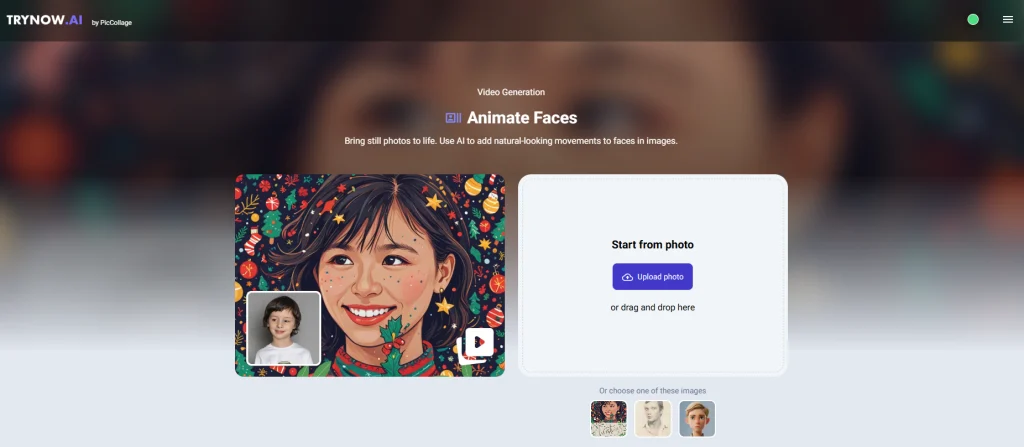 • ユーザーフレンドリーなインターフェース: アップロード手順は簡単で、アニメーション化したい写真をドラッグアンドドロップするだけです。