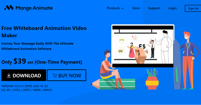 Animēti skaidrojošie videoklipi ir arī veids, kā reklamēt savu uzņēmumu Mango Animate Animācijas veidotājs palīdz jums šajā ziņā. Animētu skaidrojošo video noformēšana/izveidošana kļūst vienkāršāka, izmantojot Mango Animate Animation Maker. Ir trīs pakotnes: bezmaksas pakotnes, profesionālā pakotne (vienreizēja maksa $49) un uzņēmuma pakotne (vienreizēja maksa $199). Lietotāji saņem neierobežotas lomas, ainas, kameras, fonus un bezatlīdzības vektora attēlus Enterprise pakotnē. Redaktoru ir viegli pārvaldīt, tostarp velciet un nometiet visus elementus, lai izveidotu tāfeles animācijas videoklipus. Jūs saņemat universālu tāfeles animācijas rīku.