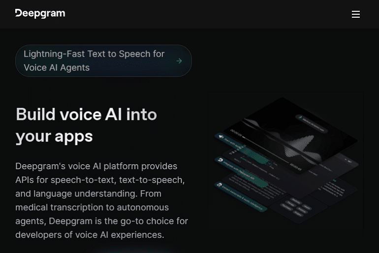 Teksta pārvēršanas runā funkcijai kvalitāte un ātrums ir nepieciešamas sastāvdaļas dabiskas AI balss ģenerēšanai. Deepgram ir AI balss pārraides ģenerators tiešsaistē, kas ir populārs zemā latentuma dēļ. Tas optimizē sistēmas latentumu ar atvērtā pirmkoda kodu, lai sasniegtu ātruma latentumu, kas mazāks par 250 ms. Tomēr šim rīkam trūkst dažu balss rediģēšanas rīku, tāpēc jūs nevarat pielāgot un personalizēt savu balsi.