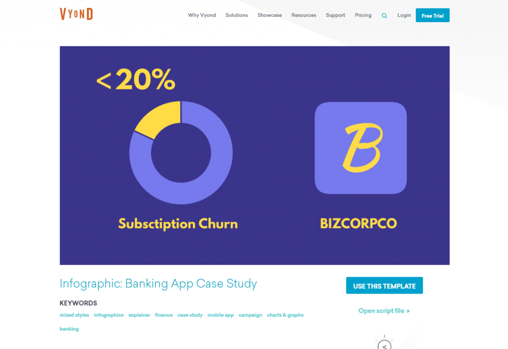 Twórca infografik wideo firmy Wideo zapewnia wiele animowanych szablonów wideo marketingowych, a firmy mogą korzystać z tych szablonów zawierających wykresy i zastępować je danymi oraz łatwo tworzyć własne wideo infografiki.