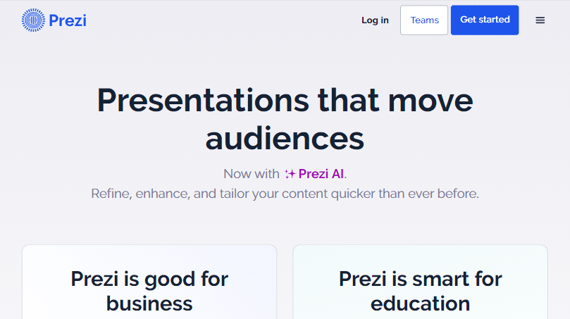 Prezi é um profissional software de apresentação multimídia que facilita a criação de apresentações de slides atraentes. Ele vem com uma tela aberta que evita as restrições dos slides lineares. Inicie suas apresentações com modelos predefinidos para agilizar o processo de criação de slides bem elaborados. Esta ferramenta de design do PowerPoint possui uma biblioteca de recursos premium, incluindo milhares de ícones, adesivos e imagens, para ajudá-lo a criar apresentações de slides visualmente atraentes. Aproveitar seus gráficos, mapas e gráficos coloridos não apenas mostra os dados de maneira organizada, mas também dá vida ao seu conteúdo.