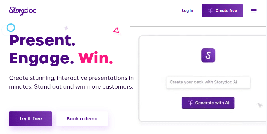 Storydoc é um software de design de apresentações rico em recursos que oferece métodos eficientes para criar apresentações de slides interativas. Uma vasta gama de modelos atende a uma ampla variedade de necessidades de apresentação, incluindo vendas, marketing e arrecadação de fundos. Possui uma rica galeria de imagens e vídeos para ajudá-lo a criar slides cativantes e manter o público preso. Embora o Storydoc funcione em diferentes dispositivos, as apresentações feitas com ele ficam bem formatadas em todas as telas, proporcionando uma experiência de visualização consistente e agradável para o seu público.