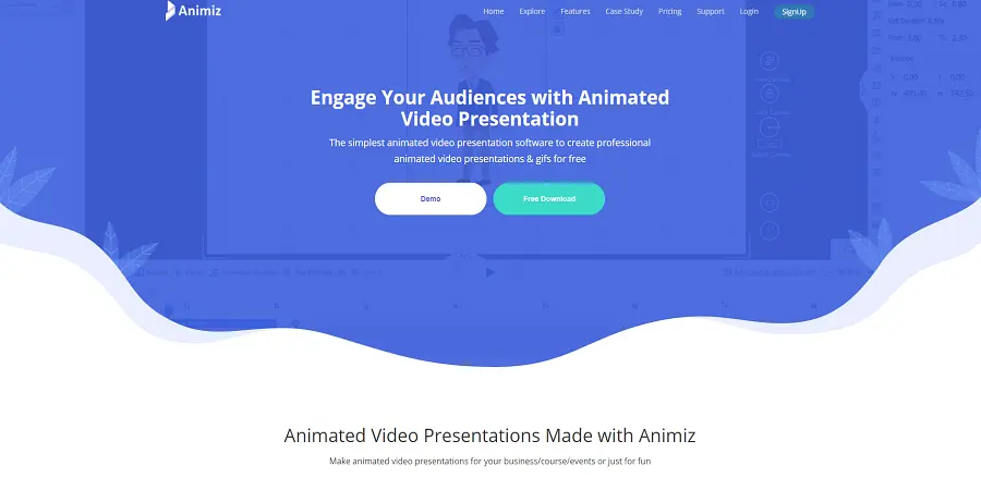 Animiz este un software video explicativ pentru tablă albă care este conceput pentru începători. Acesta oferă o interfață simplă care vă permite să creați videoclipuri rapid și ușor. Software-ul vine cu o bibliotecă de imagini și audio pre-făcute și, de asemenea, puteți adăuga propriile media pentru a crea un videoclip unic. Animiz oferă, de asemenea, o gamă largă de opțiuni de personalizare, inclusiv posibilitatea de a adăuga animații și tranziții.