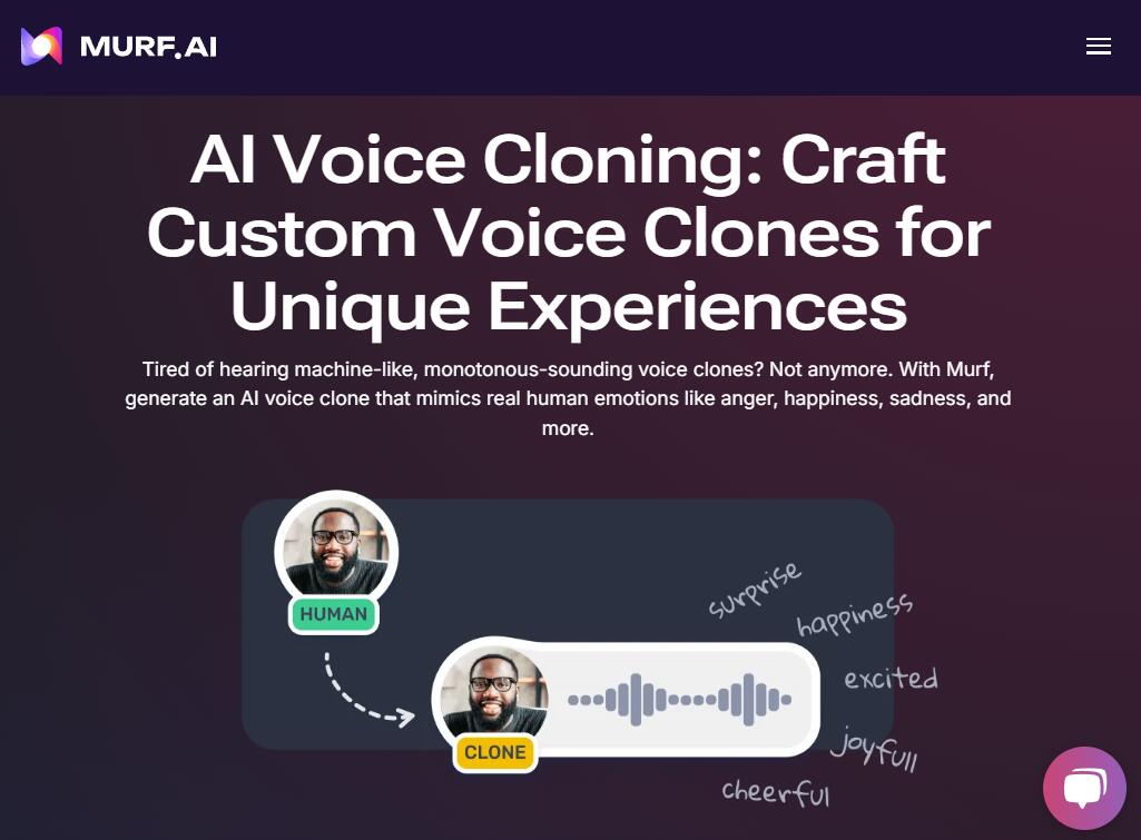 Murf AI - это универсальный генератор текста в голос онлайн бесплатно Инструмент, предлагающий набор продуктивных функций, включая преобразование текста в речь, клонирование голоса, транскрипцию речи, дубляж AI и перевод закадрового голоса. Вы будете впечатлены его программой клонирования голоса AI, которая воспроизводит тон, скорость и высоту вашего голоса из загруженного вами аудиофайла. Кроме того, Murf AI поддерживает вас в настройке голосового клона ИИ для передачи различных эмоций для разных случаев использования. производит высококачественное клонирование голоса.