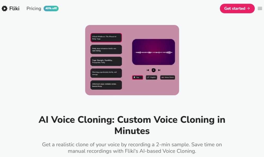Fliki - это еще одна известная программа для клонирования голоса ИИ, используемая для создания естественных голосовых клонов для рекламы. Она поддерживает множество языков, таких как испанский, японский, немецкий и китайский. Вы можете добавить эмоцию к клонированному голосу, от возбужденного и сердитого до дружелюбного и грустного.