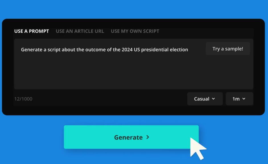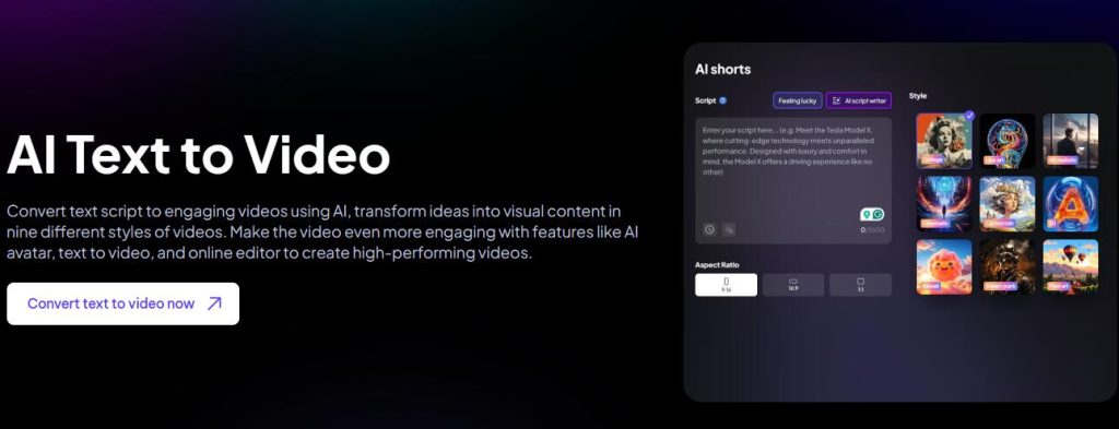 Creatify — это отличный редактор текстов в видео, который позволяет превратить ваши простые идеи в потрясающий визуальный контент в 9 различных стилях видео, включая Pixel Art, Steam Punk, Kawail, 3D, Cartoonish, Cinematic, 4K Realistic, Line Art и Collage. Не стесняйтесь вводить свой собственный текст сценария или используйте AI-сценариста, чтобы он помог вам его написать. На основе написанного описания он создаст высококачественное видео за считанные секунды.