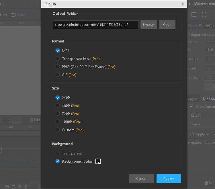 Seveda lahko izvozim svoje materiale. Mango Animate Character Animation Maker podpira uporabnike pri izvozu datotek PNG in PSD.
