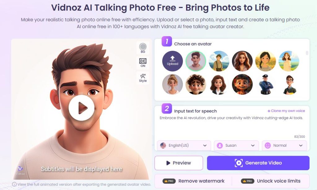 Genom att välja de mest relevanta alternativen säkerställer du att AI-verktyget kan producera så realistiska och meningsfulla fotovideor som möjligt. Dessutom kan textningsfunktionen visa de talade orden som undertexter längst ner för att passa personer med hörsel- eller kognitiva problem. På så sätt kan de bättre förstå dina videor.
