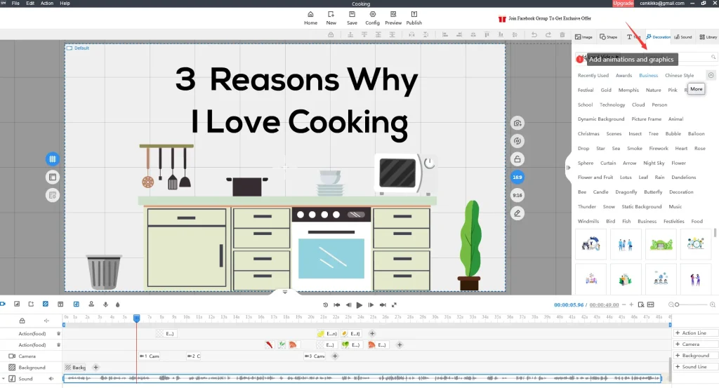 Bir şablon seçtikten sonra, bir sonraki adım animasyonlar ve grafikler eklemektir. Mango Beyaz Tahta Animasyon Aracı, videonuzu geliştirmek için kullanabileceğiniz animasyon ve grafiklerden oluşan bir kütüphaneye sahiptir. İsterseniz kendi grafiklerinizi de yükleyebilirsiniz.